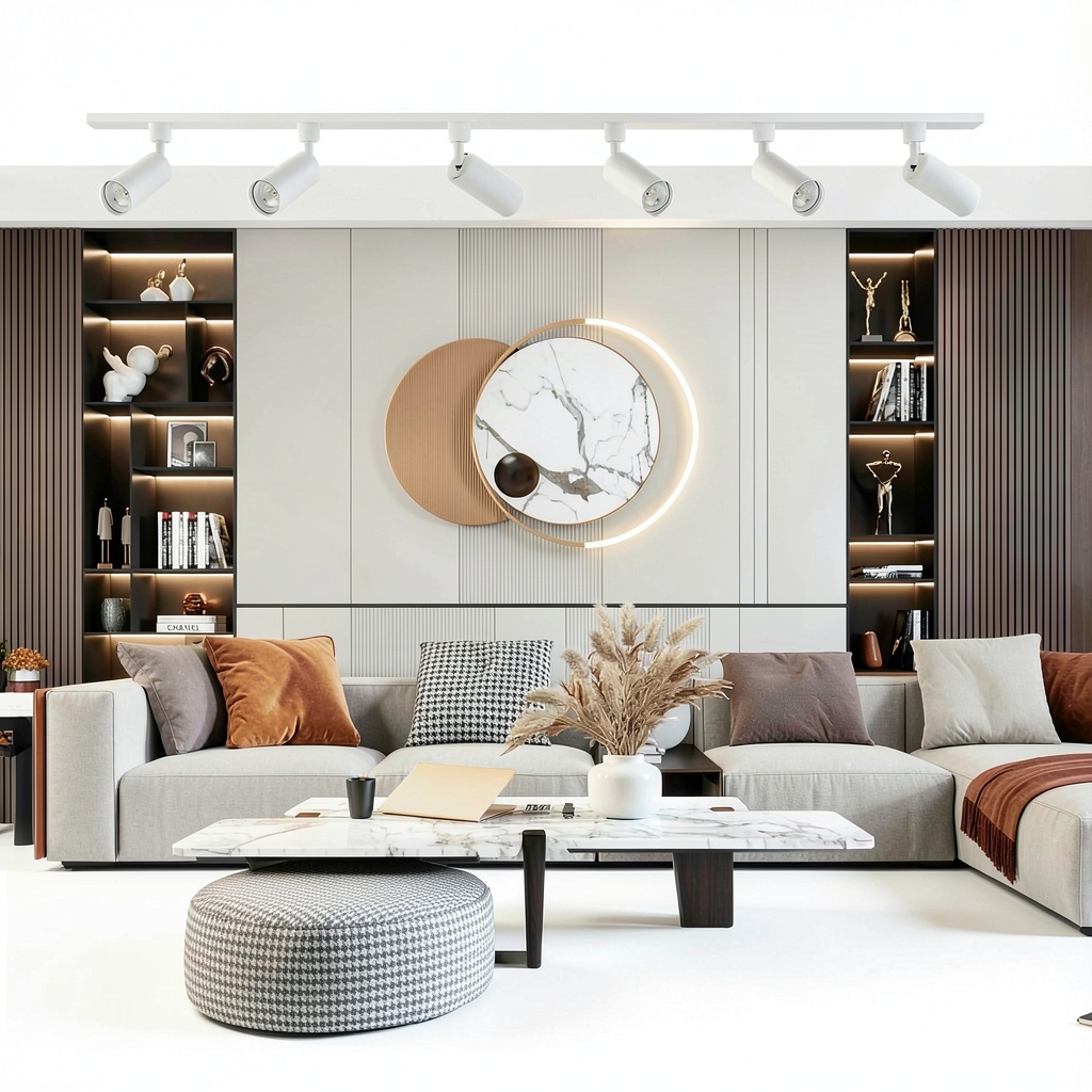 This track lighting kit is ideal for indoor environments such as retail stores, restaurants, living rooms, kitchens, meeting rooms, galleries, and studios. It helps highlight product details, create ambiance, and provide focused task lighting. The flexible design allows for easy customization in residential or commercial spaces, catering to homeowners, business owners, and designers seeking efficient and adaptable lighting solutions.