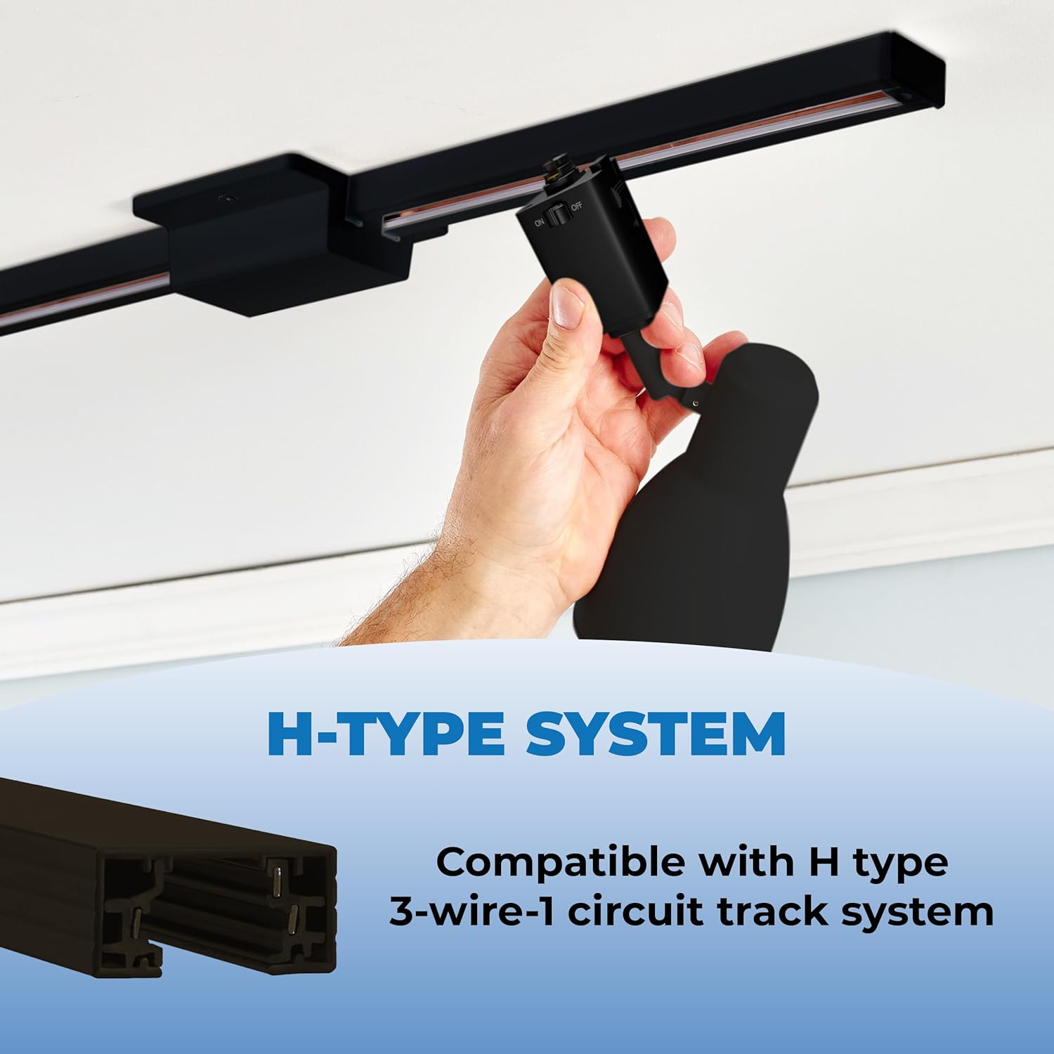 It is compatible with H-type track lighting systems that use a 3-wire, 1-circuit setup, so check your existing track type for compatibility before purchase.